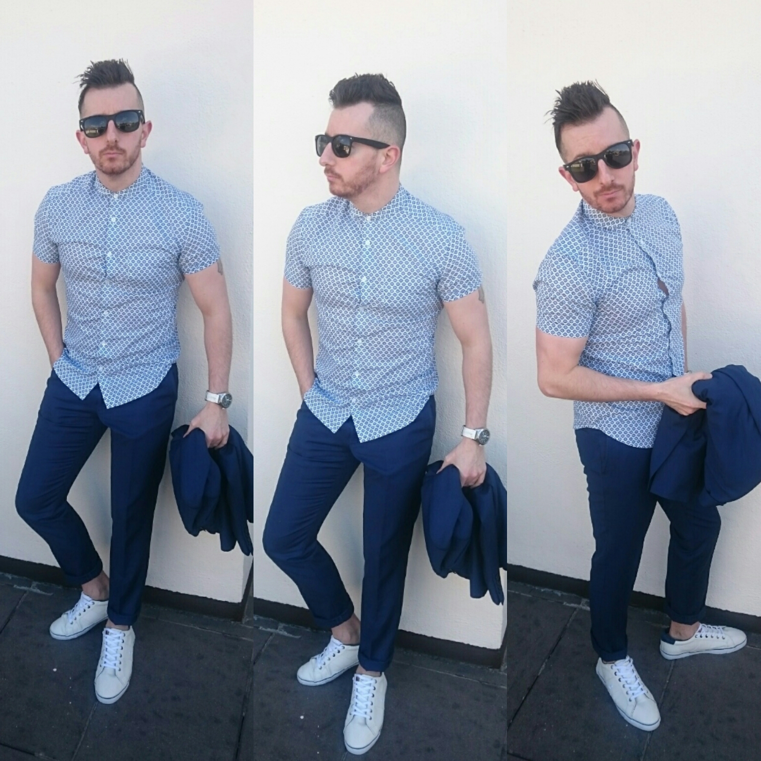 Again, almost effortless style here. White and Navy are simply dynamite together! Also don’t rule out burgundy or more Autumnal colours just yet. These look great when paired with strong opposing colours (burgundy and blue) Looks good worn as a full suit (a christening or wedding afters?) as well as just trousers and the shirt. Gotta add some shades!